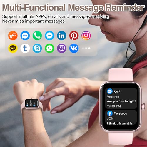 Message Notifications & Bluetooth Call Smart Watch: Konitee smart watch for men women has a built-in microphone and speaker. Connecting your smart phone via bluetooth and “VeryFit” app, you can use this bluetooth smart watch to easily make & receive bluetooth calls, store contacts, view call records. Also, you can receive and read real-time text messages from our smartwatches, such as SMS, Facebook, WhatsApp, Instagram, Tiktok, Twitter, Snapchat etc.
