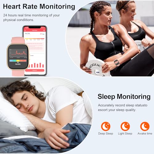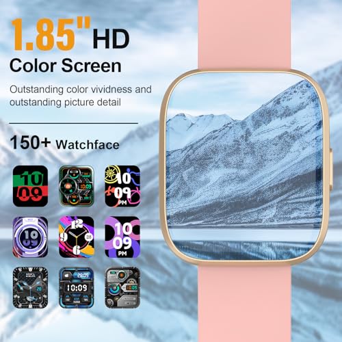 Smart Watch for Women, 1.85″ HD Screen Smartwatch with Bluetooth Calling, 110+ Sport Modes Fitness Watch with Heart Rate/Sleep Monitor, IP68 Waterproof Fitness Tracker Compatible with Android iOS Pink