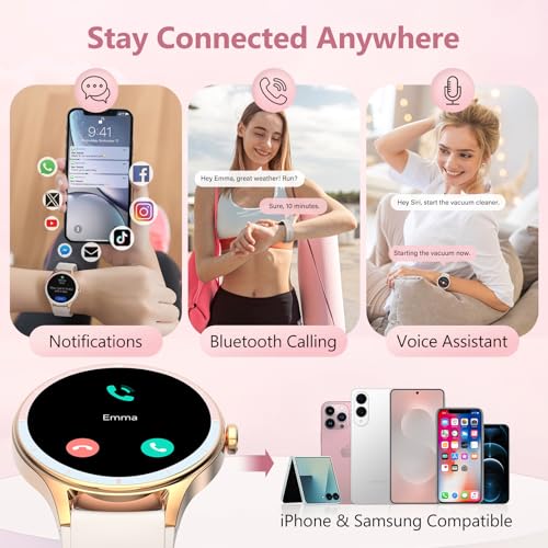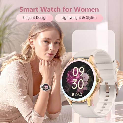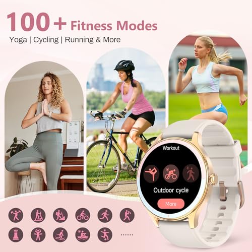 Smart Watch for Women, iPhone & Android Compatible, Heart Rate SPO₂ Sleep & Women’s Health Tracking, 100+ Sports Modes, Waterproof Fitness Smartwatch with Custom Watch Faces & Long Battery Life (Gold)