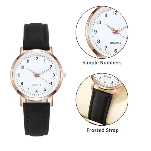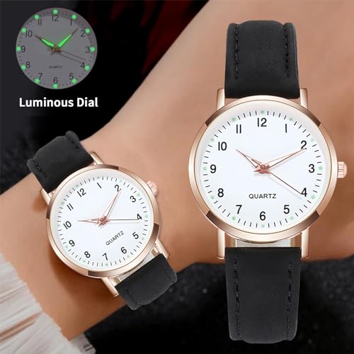 Simple Quartz Analog Luminous Watch for Men Women Minimalist Casual Fashion Thin Small Round Wrist Watch with Easy Read Dial PU Leather Strap