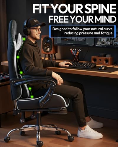 Stay Comfortable in Long Gaming or Work Sessions: Lower back pain is the #1 complaint from gamers and office workers. Our Ergonomic Gaming Chair with Massage Lumbar Pillow delivers soothing support that keeps your spine aligned during long gaming sessions, streaming, or working from home.