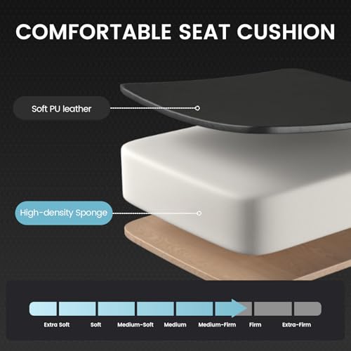 High-Quality Materials: The seat is filled with high-density foam that is not prone to collapse, providing a long-lasting. The outer layer is covered with wear-resistant PU leather, soft and skin-friendly, both breathable and easy to clean. The metal base is certified by BIFMA, strong and stable, with a maximum bearing capacity of 330 pounds, and the air pressure rod is selected as a high-quality gas rod certified by SGS, which ensures smooth lifting and is safe and reliable