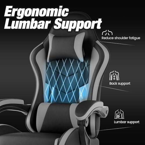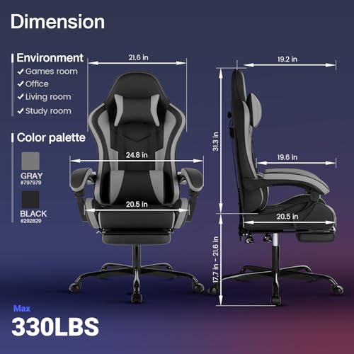 Gaming Chair with Footrest, Ergonomic Gaming Chair Racing Style Adjustable Height High-Back PC Computer Chairs, Video Game Chairs with 360°-Swivel Seat and Headrest, Black Grey