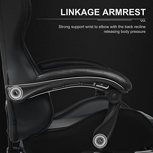 GTRACING Gaming Chair, Computer Chair with Footrest and Lumbar Support, Height Adjustable Gaming Chair with 360°-Swivel Seat and Headrest (Bright Black)