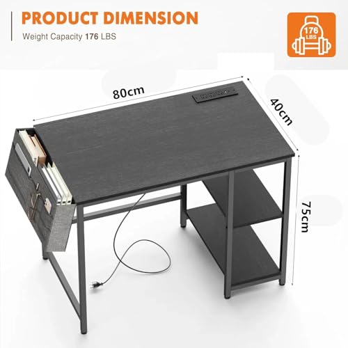 Computer Desk, 32 inch Gaming Desks, with with USB Charging Port & Power Outlet, Office Laptop Table, Study Tables with Metal Frame, Wood with Floating Shelves, Black