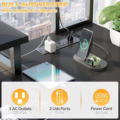 【USB Charging Ports & Power Outlets】The computer desk are equipped with 3 power outlets and 2 USB charging ports for your electronic devices, you can easily and conveniently charge your smart phone, gaming gear or Bluetooth devices when you are working or playing games.
