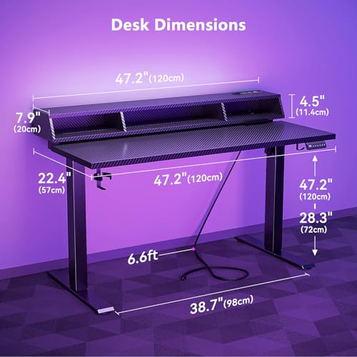 Offigo Gaming Standing Desk with LED Light, 48 Inch Electric Height Adjustable Desk with Power Outlet & Floating Monitor Shelf, Sit Stand Computer Workstation for Home, Bedroom