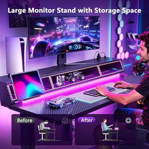 Immersive Gaming Experience: Enhance your gaming experience with our floating gaming desk featuring built-in LED lights. The unique floating design creates a mesmerizing ambient light effect, perfect for any gaming or office workspace