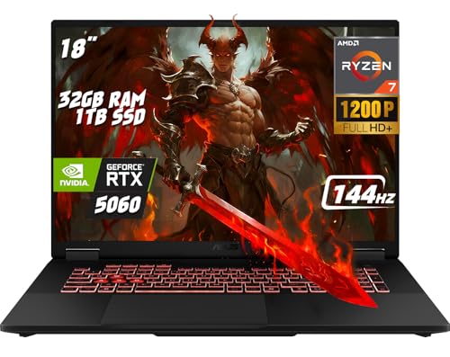 ASUS TUF Gaming A18 Laptop, AMD Ryzen 7 260, NVIDIA GeForce RTX 5060, 18″ FHD+ 144Hz IPS Display, 32GB DDR5, 1TB PCIe NVMe SSD, Windows 11 Home, RGB Backlit Keyboard