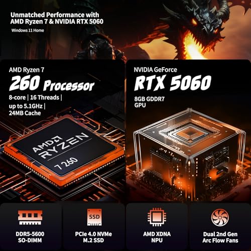 Powerful Gaming and Multi-Tasking Performance: Equipped with the 【AMD Ryzen 7 260 processor】 (8 cores, 16 threads, up to 5.1 GHz) and the 【NVIDIA GeForce RTX 5060 GPU】 (8GB GDDR7), this laptop ensures seamless gameplay and efficient multitasking, handling the latest AAA games and demanding creative workloads with ease.