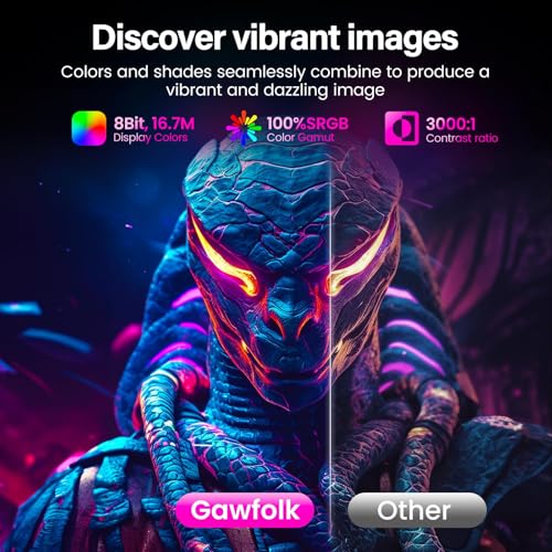 FLEXIBLE CONNECTIVITY – Gawfolk gaming monitor provides HDMI*1 and DisplayPort*1 interfaces, offering connections to Xbox, PC, laptops, and more. Experience high-quality image transmission, allowing you to seamlessly transition between work and entertainment.Support HDMI (up to 120Hz), DP (up to 200Hz)
