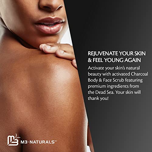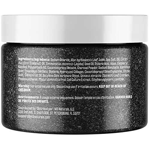 M3 Naturals Charcoal Scrub Face Foot & Body Exfoliator Infused with Collagen and Stem Cell – Natural Exfoliating Salt Body Scrub for Toning Skin Cellulite Skin Care Body and Face Exfoliator