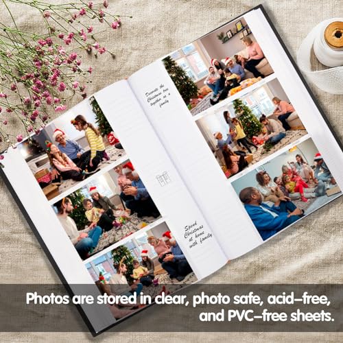 ACID-FREE PHOTO ALBUM 4×6: The inner pages is designed with acid free and PVC free material between high transparent film slots, stopping photos from sticking together, prolonging their life and keeping your photos air free and dustproof, tear resistant, high transparency pocket pages, restores the true color of the photos.