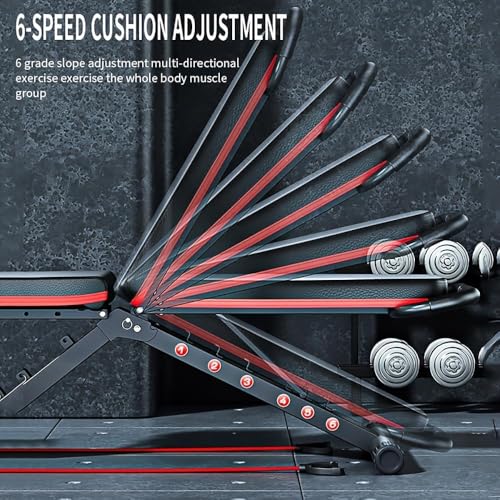 Are you looking for a small sized and home fitness equipment for your home, especially for a small house? Our Weight Bench is a great choice for you, which is designed to be multifunctional. You can perform a wide range of exercises, such as back exercises, barbell bench presses, barbell rack, butterfly, butterfly attachment, cable pulldowns, crunches, dip bar etc. The thickened steel make the weight bench more stable and durable. It helps you exercise the wholebody muscles: back muscles, shoulder muscles, arm muscles, chest muscles, hip muscles, leg muscles and so on. The 6 backrest pad positions can perfectly meet all of your needs when exercising. The soft PU leather which is filled with dense foam padding helps reduce muscle fatigue to avoid sports injures, providing a comfortable exercise experience. Our product is easy to assemble, coming with the hardwares and installation instruction. It also can be folded, not taking up too much space. Let’s get moving!
