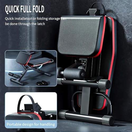 Adjustable Roman Chair for Home Gym – Foldable Back Extension Bench for Core, Hip & Lower Back Workout – Multi-Functional Hyperextension Bench with Tension Rope for Full-Body Exercise