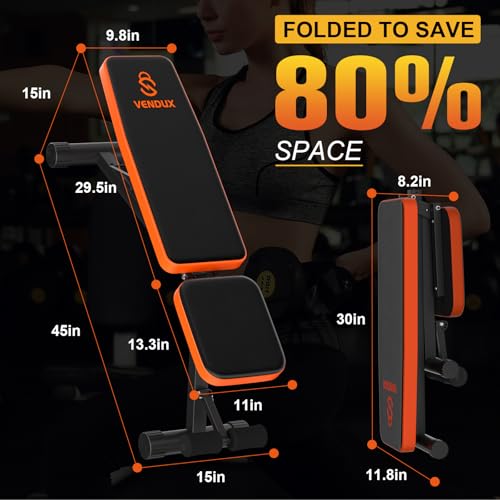 Fold in 2 Seconds, Save 80% Space—Effortlessly maximize your space with the VENDUX Aadjustable weight bench! Say goodbye to storage woes thanks to its innovative 2-second foldable design. This marvel of engineering not only simplifies your life with its quick and easy folding mechanism but also astonishes you by saving up to 80% of space. Ideal for both home and gym use, the bench adjusts swiftly, allowing you to reclaim your area with ease.