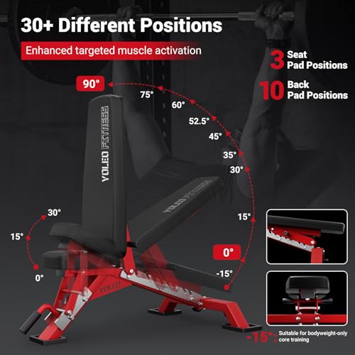 YOLEO Commercial Adjustable Weight Bench – MAX 2300LBS Heavy Duty Workout Bench for Home Gym, Decline/Flat/Incline Bench Press 2.4″ Thick Pad (6-Step Assembly)