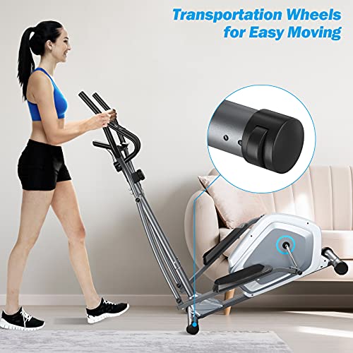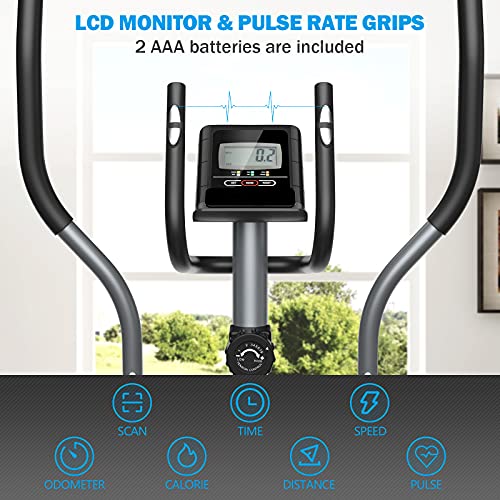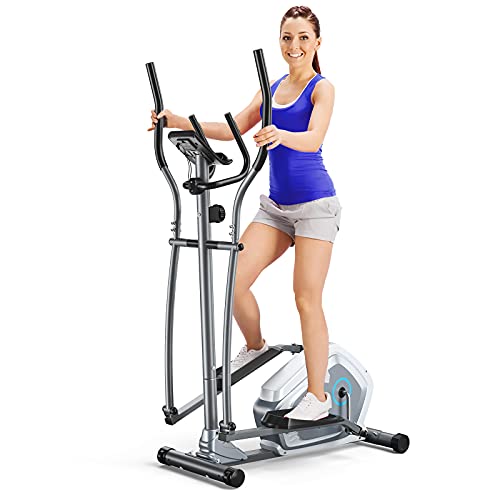 Goplus Elliptical Exercise Machine, Magnetic Cross Trainer w/LCD Monitor & Pulse Sensor, 8 Resistance Levels, Cardio Workout Fitness for Indoor Fitness Gym
