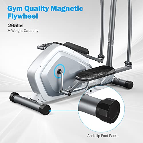 ►【All-in-one Workout Station】The elliptical machine allows you to train upper and lower muscle groups simultaneously. With the help of high quality and noiseless magnetic flywheel, you can enjoy smooth exercising at home. This machine is great for strengthening body strength and build body shape, and it won’t cause too much pressure on your knees.