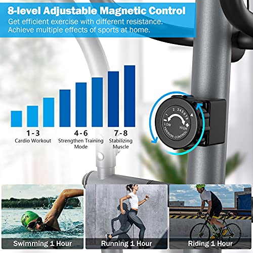 ►【8-Level Adjustable Magnetic Resistance】There is a tension knob for you to adjust magnetic resistance to simulate different exercise effects. You can achieve desired training intensities from level 1 to level 8 according to your training plan. No matter you are a beginner or a veteran, you demands will be satisfied by the cross trainer.