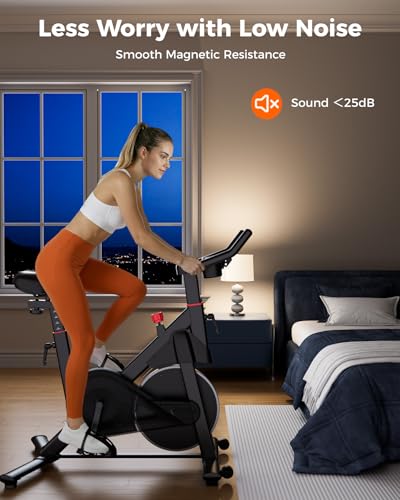 Quiet Rides, Any Time of Day: Designed for whisper-quiet operation, this bike combines a smooth magnetic flywheel with noise-reducing engineering to keep sound levels under 25dB. Whether you’re riding early in the morning or late at night, you can work out without worrying about disturbing your family or neighbors.
