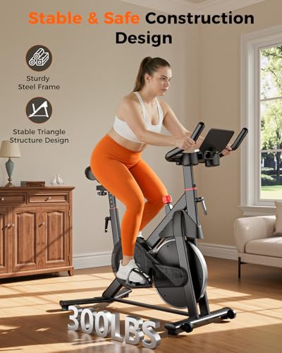 Superun Home Exercise Bike – Spin Bike with Adjustable Magnetic Resistance Features LCD Display, Cycle Exercise Machine 300 LBS Capacity Ideal for Indoor Workouts