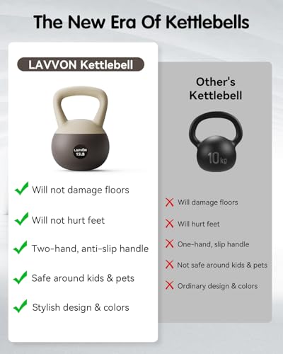 Experience a Safe Workout: Our LAVVON soft kettlebell features a sand-filled base to reduce impact, protecting your floors while minimizing noise. This makes it an ideal choice for strength training kettlebells, ensuring a safe and comfortable workout experience.