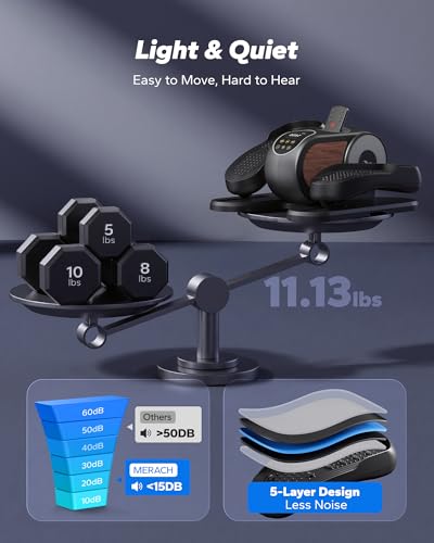 2-in-1 Auto & Manual Modes:With 12 manual speed levels and 12 auto modes (P1–P12), this elliptical exercise machine lets you adjust intensity to fit your routine—at home or in the office. Merach under desk elliptical machine for home helps you stay active and match your fitness goals every day