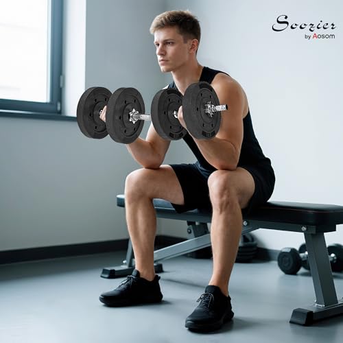 Soozier Weight Plates Set of 4, 1-Inch Barbell Plates Weight Dumbbell Set for Home Gym Strength Training and Weightlifting, 4 x 11 lbs, Black