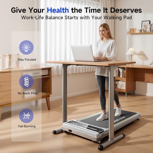 【Plug & Play: No Installation Needed】Our under-desk treadmill is powered by a 2.5 HP brushless motor, delivering quiet and smooth performance with speeds from 0.5 to 3.7 MPH—perfect for switching between walking and light jogging. Tailored for busy professionals, it helps foster a healthier, more balanced work-life routine. No installation needed—just unpack and start using right away.