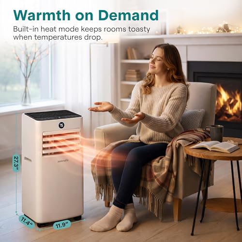 4-IN-1 FUNCTION AIR CONDITIONER – This room air conditioner also functions as a dehumidifier, heater, and fan for year-round comfort. Adjust the temperature, fan speed, and timer with LED display and remote control for ultimate convenience.