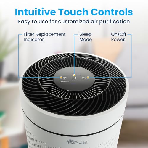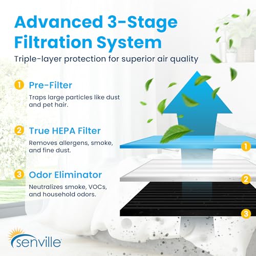 Senville Air Purifier for Home Allergies, Pet Hair in Bedroom, 3-in-1 HEPA Filter, Dust, Smoke, Pollutants, Odor, Flow 500, White
