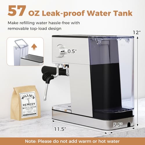 COSTWAY Espresso Machine 20 Bar, Compact Stainless Steel Coffee Maker with Milk Frother, 57OZ Removable Water Tank and Hot Water Function for Late, Cappuccino and Cold Brew