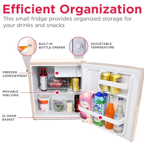 ADJUSTABLE TEMPERATURE – Our mini refrigerator’s thermostat control offers several temperature settings for better adaptation to external temperature and lower energy bills. This tiny refrigerator also has a light-degree freezing storage compartment for ice cubes.