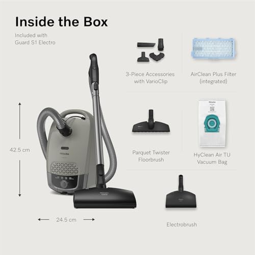 Miele Guard S1 Electro Bagged Canister Vacuum Cleaner with AirClean Plus Filter, Parquet Twister Floorbrush and Electrobrush, Lightweight & Compact Design, Casa Grey – 12752440