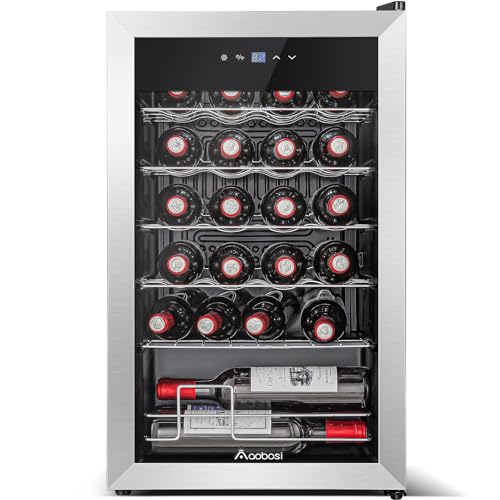 AAOBOSI 17 Inch Wine Fridge, 24 Bottle Wine Coller With Digital Temperature Control 5~18°C, Built-In or Freestanding, Low Noise, Adjustable Shelves, Ideal for Red Wine, White Wine, and Champagne