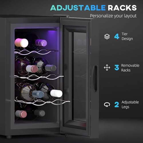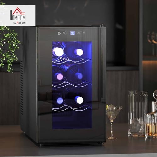 HOMCOM 10″ Mini Freestanding Wine Cooler Refrigerator, 8 Bottle, Thermoelectric Wine Fridge with Glass Door, Digital Temperature Control, Quiet Wine Cellar for Champagne