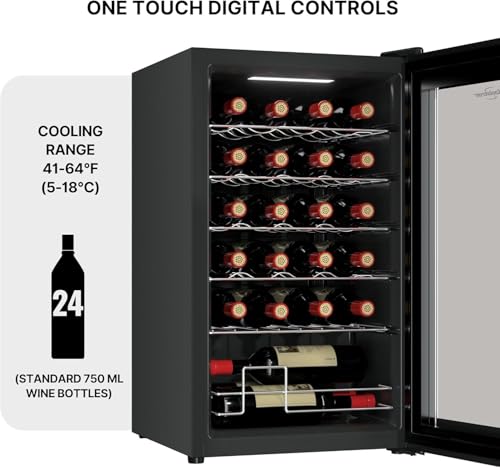 Koolatron Wine Fridge – Wine Cooler, 24 Bottle Wine Cabinet for Champagne, Red & White Wine, Freestanding Cellar For Bar, Home, Kitchen, Double Paned Glass Door, (68L)