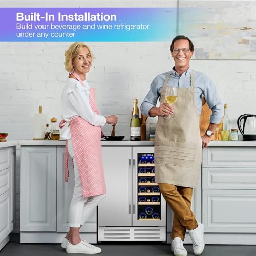Built-In or Freestanding Installation:The 24” wide wine and beverage fridge can be installed both under a counter built-in or freestanding;Requires only (H x W x D)34.25 x 23.42 x 22.63 inches of space and can be installed;The built-in installation enables a maximum door opening angle of 180 degrees, and a freestanding style to a maximum of 225 degrees;User-friendly design for you to manage your wine collections or drinks