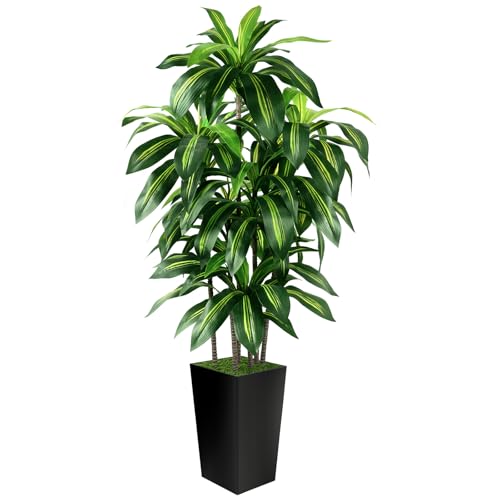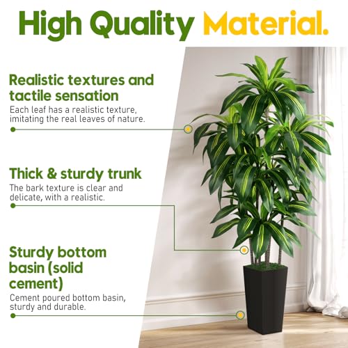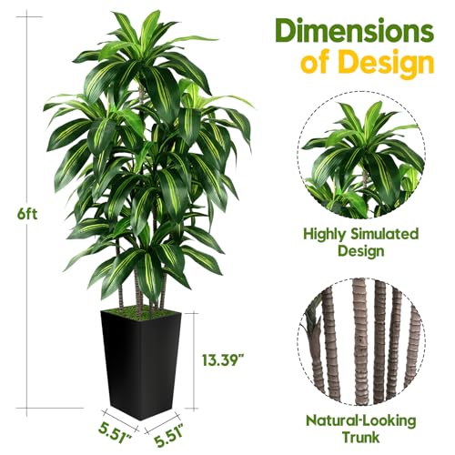 Artificial Dracaena Tree Indoor, 6FT Tall Fake Tree with Black Tall Planter, Artificial Trees Fake Yucca Potted Tree for Home Office Living Room Decor, Tall Artificial Plant for Housewarming
