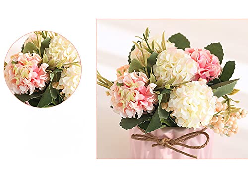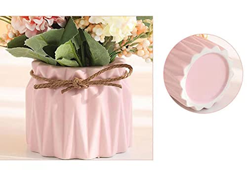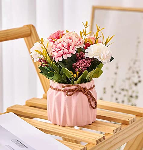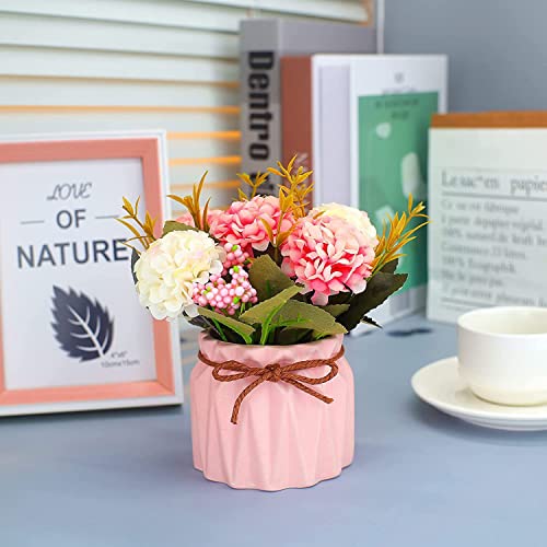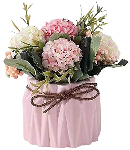 Artificial Plant,Artificial Flower Bonsai, Artificial Hydrangea Miniature Potted Plant on Ceramic vase, Used for Home Party Office Table Decoration (Pink)