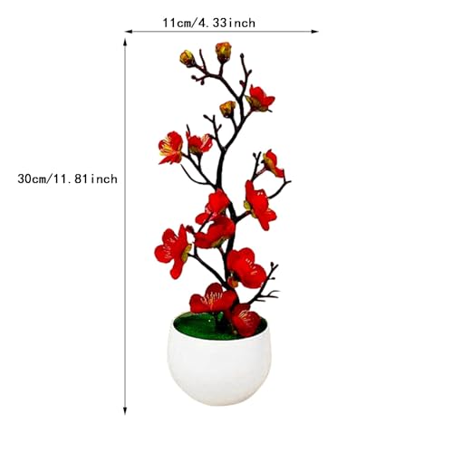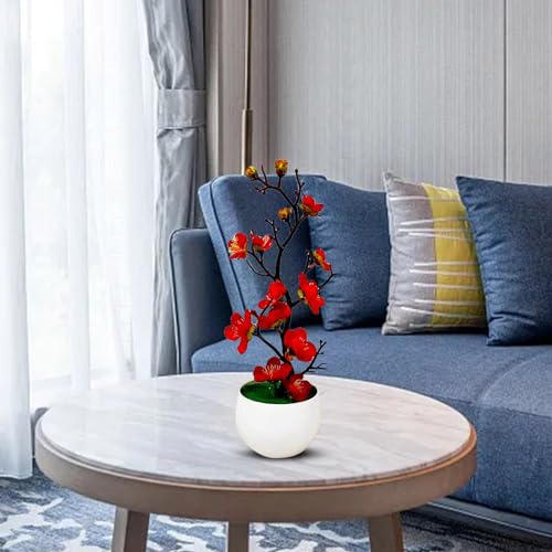 Elevate your home or office decor with our exquisite Artificial Plum Blossom Bonsai.
