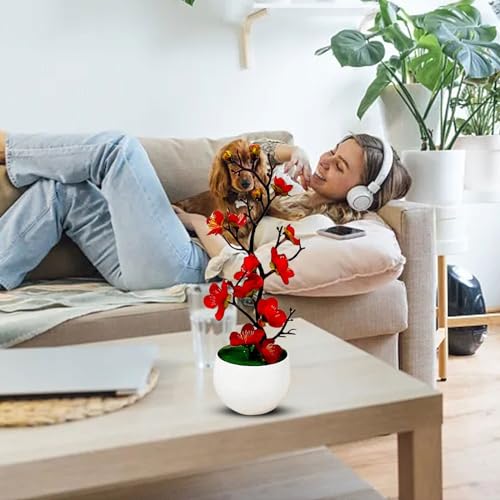 Our artificial plum blossom bonsai is crafted using high-quality materials, ensuring durability and long-lasting vibrancy. The sturdy construction means that you can style this arrangement anywhere. Whether you are looking to decorate your office or your home, this is the ideal solution. The striking red color and elegant design make it a versatile piece of decor for all seasons. It’s also a thoughtful and lasting gift for friends, family, or colleagues. Embrace the timeless charm of floral arrangements without any of the usual upkeep, and let this faux bonsai bring a touch of elegance to your space.
