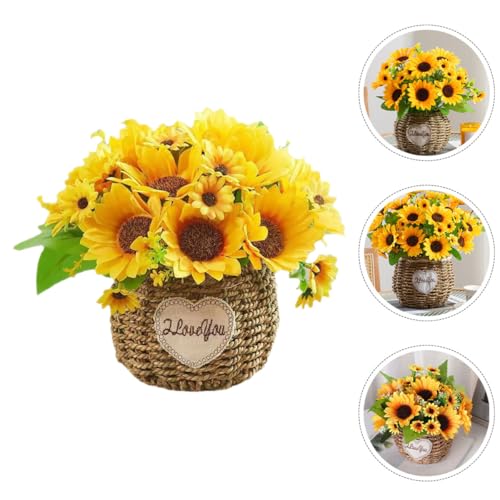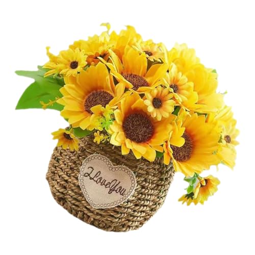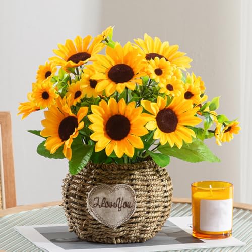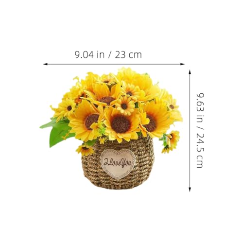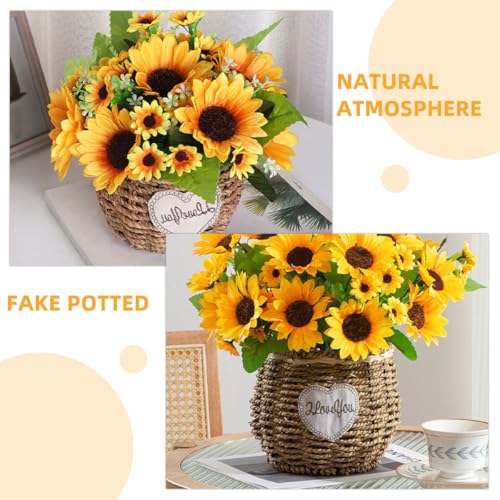 GARVALON Artificial Sunflower Bonsai Plant Decor, Small Tabletop Potted Fake Flower, Decorative Home