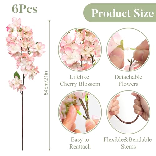 Package& Size:There are 6 fake cherry flowers (no vase included) in one package. The total height of the each cherry blossom flowers measuring about 20.8 inches/53cm,each pieces has plenty of cherry blossom flowers and buds,offering versatility for placement and allows you to decorate your space easily.