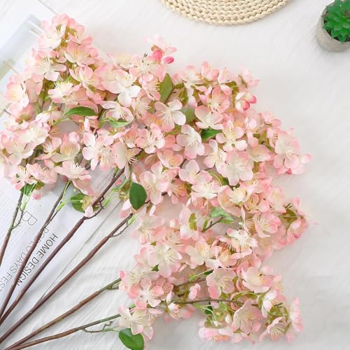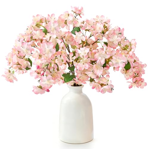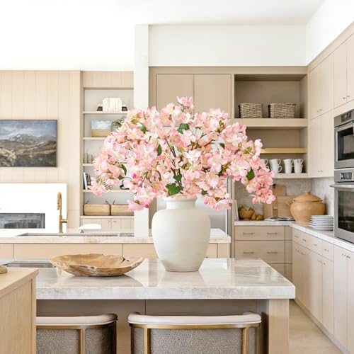 TOCHGREEN Artificial Cherry Blossom Branches 6PCS Fake Flowers Artificial Faux Silk Flowers Plum Tree Blossom Fake Plants Arrangement for Spring DIY Home Wedding Table Office Vase Decor (Pink)