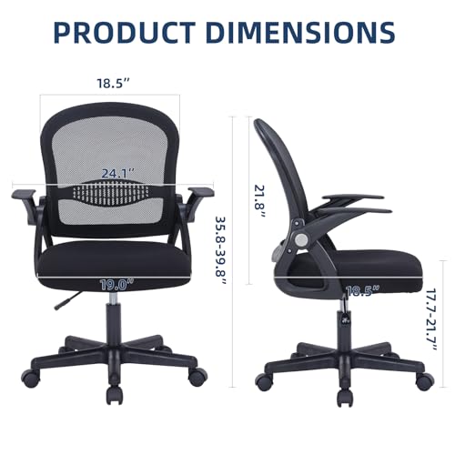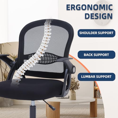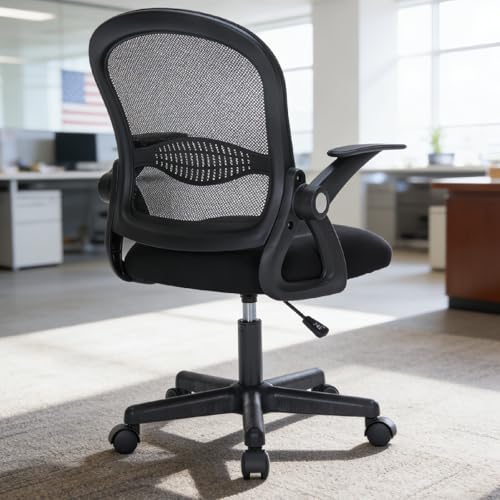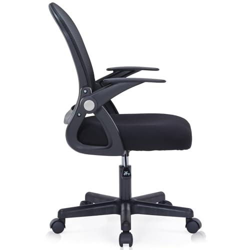 GERTTRONY Small Office Chair with Flip up Armrests Mid Back Task Chair with Lumbar Support Mesh Computer Chair for Conference Room (Black)