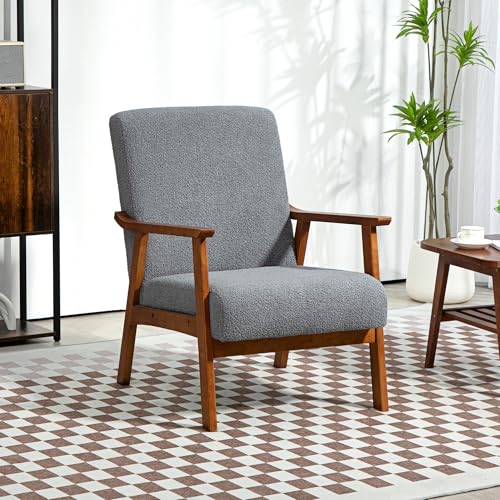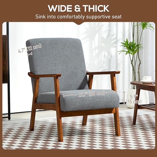 HOMCOM Accent Chair with Wide Seat, Boucle Armchair, Modern Living Room Chair with Solid Wood Frame and Thick Padding for Bedroom, Grey