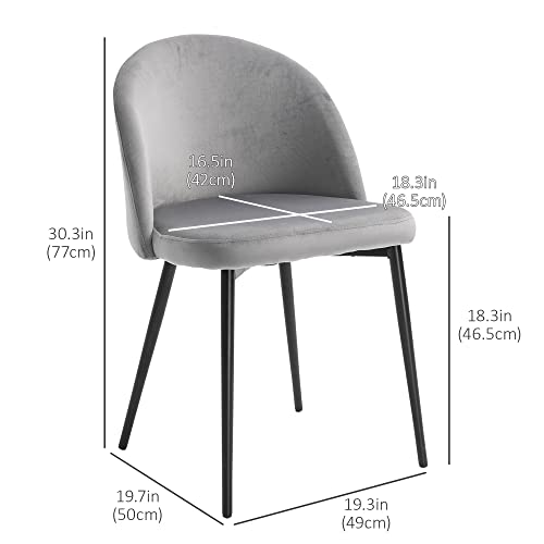 HOMCOM Modern Dining Chairs Set of 2, Mid-Back Velvet Upholstered Kitchen Chairs, Side Chair for Living Room, Dining Room, Grey