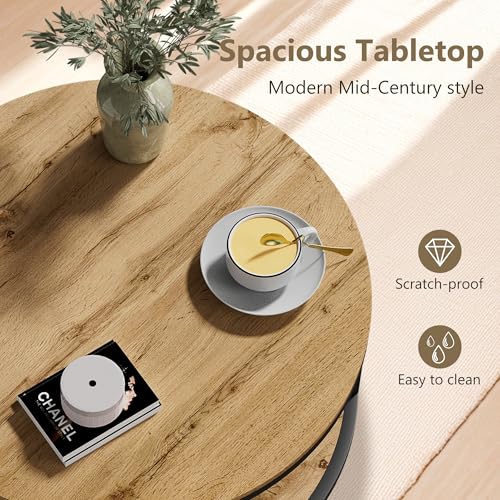[Sturdy Wood Coffee Table] The top of our round coffee table is made of MDF material which is Eco-friendly P2 particle board, waterproof and wear-resistant, Multi-step finish process achieves both good looks and superior durability. Thick matte alloy legs sturdy enough to support the coffee table.